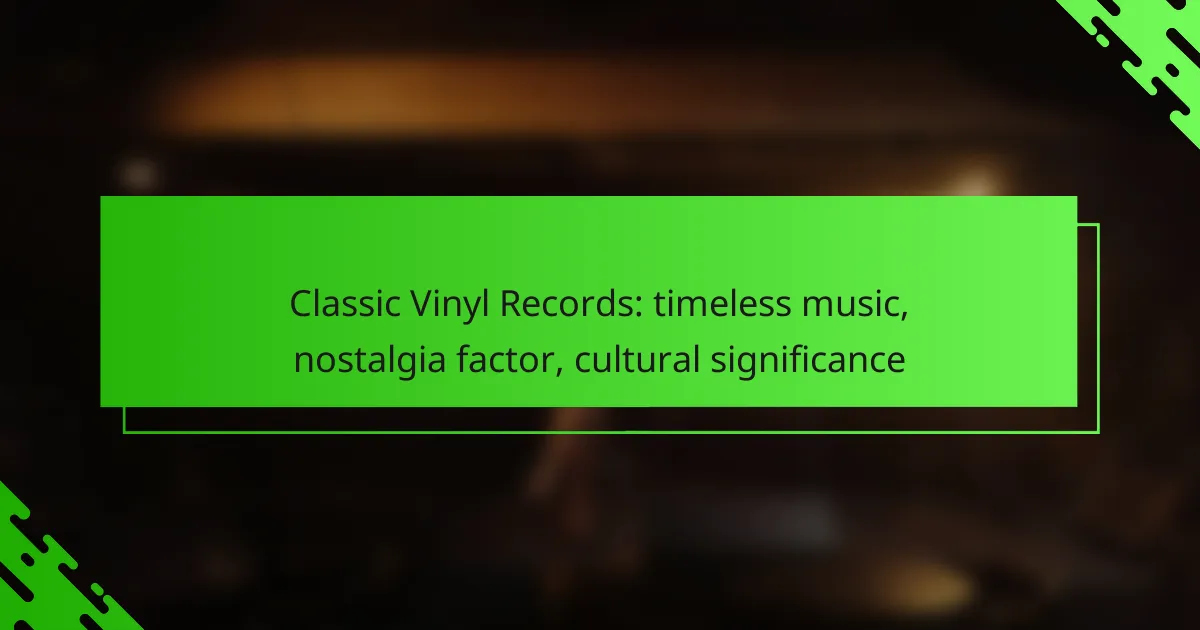 Classic vinyl records hold a special place in the hearts of music lovers, offering not only superior audio quality but also a deep sense of nostalgia. Their cultural significance is profound, as they encapsulate the essence of timeless music that has shaped generations. Collecting these records allows enthusiasts to connect with their favorite artists and eras while building a personal archive of musical history.